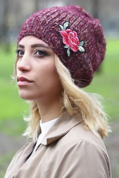 Çiçek Baskılı Kadın Şapka 1322 kırmızı