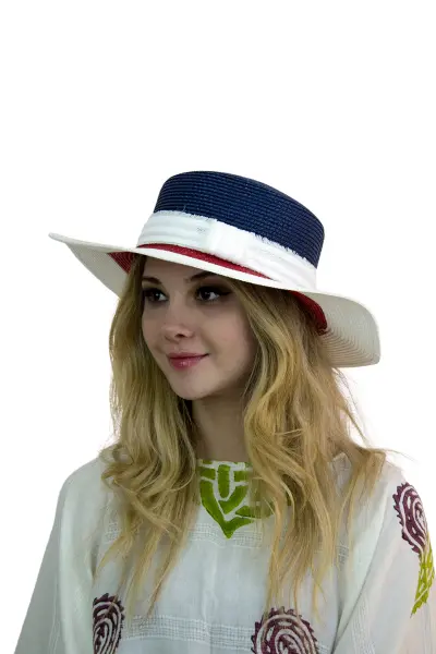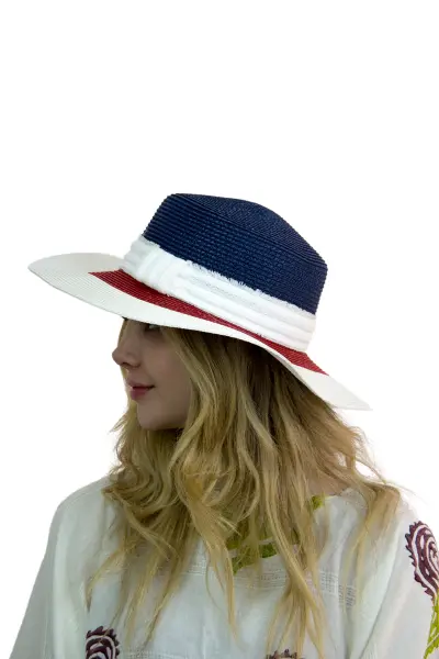 Yazlık Siperi Desenli Hasır Fötr Kadın Şapka 6261