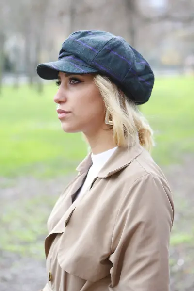 Kadın Kaptan Şapka Çizgili Yeşil 7449