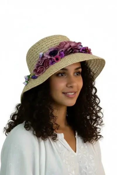 Bay Şapkacı'nın özel tasarımı Çiçek Desenli Kadın Şapka 1434, yaz aylarında hem şık hem de şıklık katmak için ideal bir seçenektir.