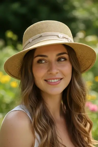 Bu şık ve zarif Çiçek Şeritli Kadın Şapka ile yaz aylarında stilinizi tamamlayabilirsiniz. Bay Şapkacı'nın özenle tasarladığı bu kahverengi şapka, plaj günlerinizde ve güneşli havalarda başınızı güneşten korurken şıklığınızı da ön plana çıkaracak.