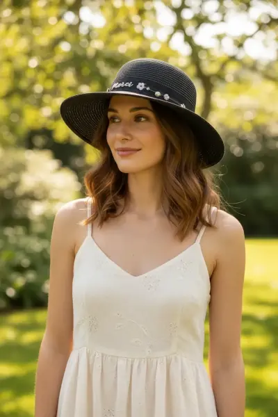 Bay Şapkacı'dan şıklığı ve rahatlığı bir arada sunan Çiçek Şeritli Kadın Şapka siyah 1297, plajda veya günlük kullanımda vazgeçilmez aksesuarınız olacak. İşte bu şapkanın özellikleri: