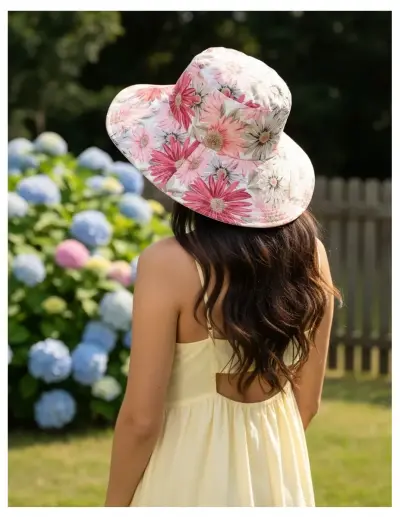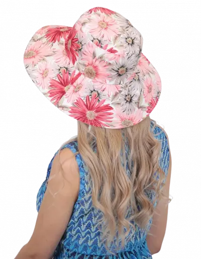Yazın güneşli enerjisini ve plaj şıklığını, bu göz alıcı çiçek desenli şapka ile kucaklayın! Canlı kırmızı,pembe, mavi ve sarı gerbera çiçeklerinin dans ettiği beyaz zemin, sahil şeridinde tüm bakışları üzerinize çekecek. Geniş ve asimetrik kenar yapısı, yüzünüzü ve boynunuzu güneşin zararlı ışınlarından şık bir şekilde korurken, stilinize iddialı ve modern bir dokunuş ekler. Nefes alabilen kumaş yapısı sayesinde en sıcak günlerde bile konforunuzdan ödün vermeyin.