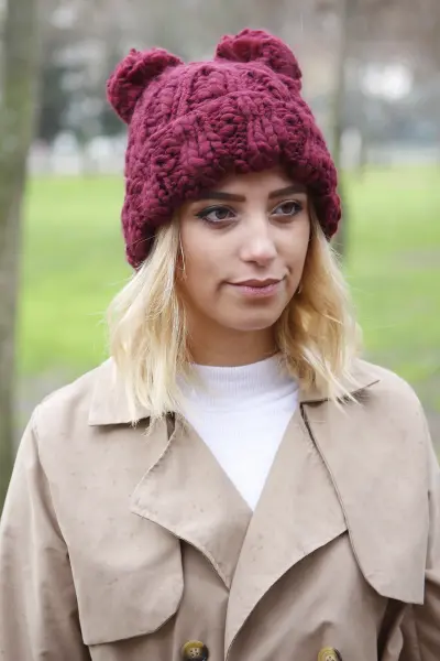Çift Ponponlu Kadın Mürdüm Bere 4114