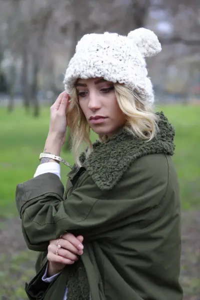 Çift Ponponlu Kadın Bej