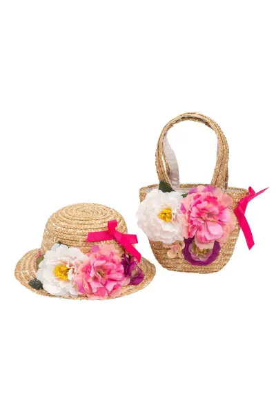 Kız Çocuk Yazlık Çiçekli Bermuda Şapka 1116