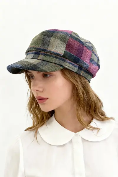 Kadın Denizci Tipi Kadife Şapka Yeşil 1243