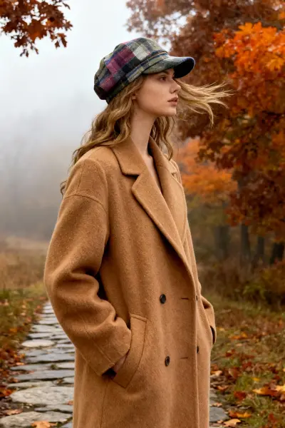 Kadın Denizci Tipi Kadife Şapka Camel 1243