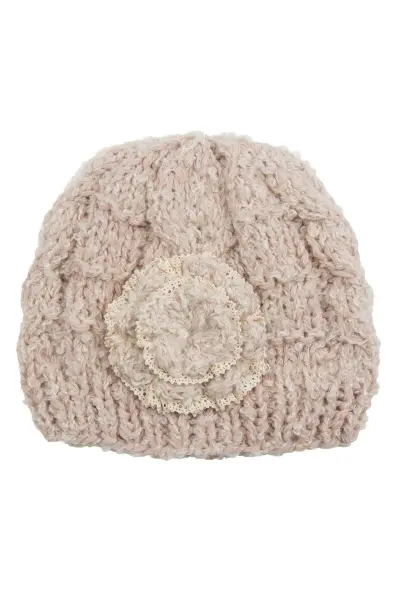 Elişi Çiçekli Kadın Bere Bej 4193