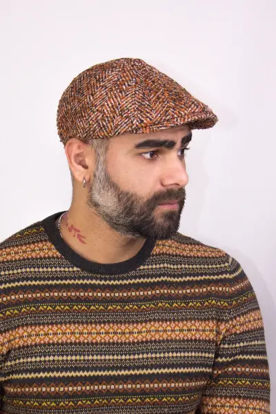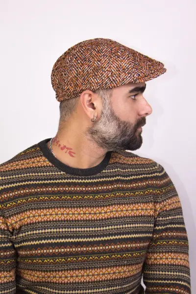 Erkek Desenli Kalın Yün Kumaş Kasket