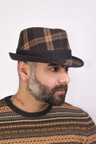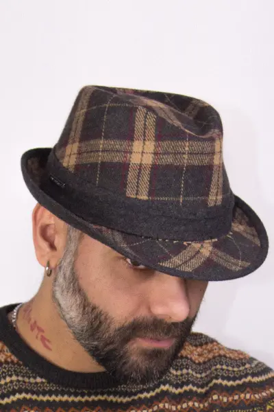 Erkek Ekose Fötr Şapka Kahverengi 5719