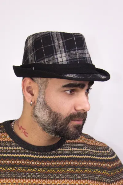 Erkek Ekose Desenli Fötr Şapka 5111 Siyah