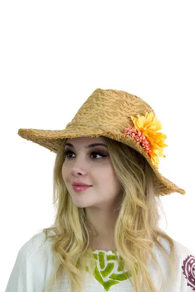 Çiçekli Hasır Kadın Şapka 3868
