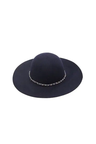 Geniş Kenarlı Zincirli Kadın Şapka Lacivert 4825