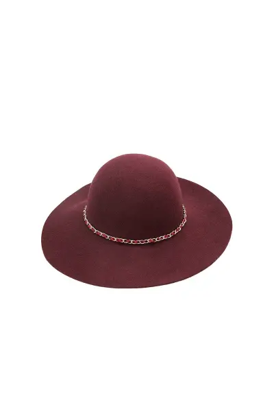 Geniş Kenarlı Zincirli Kadın Şapka Mürdüm 4825