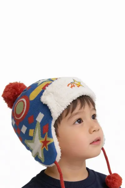 Parkta, bahçede ya da ilk kar tanesinin peşinde… İki yaşındaki o bitmek bilmeyen enerjiyi dizginlemek zor ama soğuktan korumak artık çok eğlenceli. Kendi özel tasarımımız olan bu yıldız desenli mavi kalpak, sadece başı değil, yumuşacık kürklü kulakçıklarıyla minik yanakları da sıcacık sarıyor.