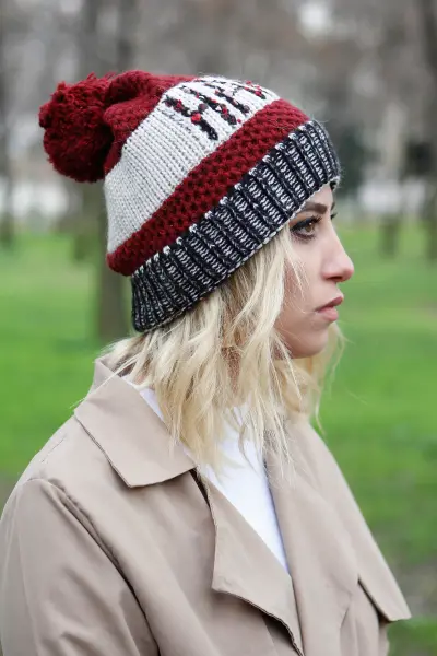 Çiçek Baskılı Kadın Şapka 1322 kırmızı