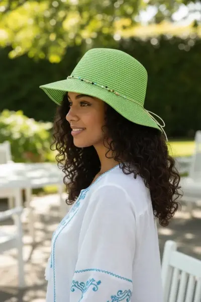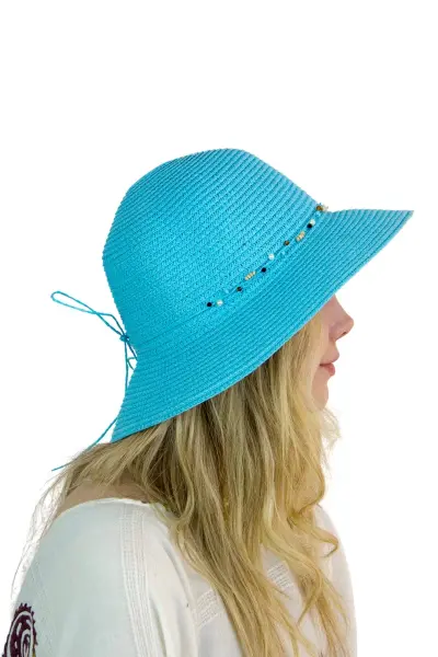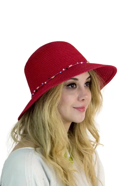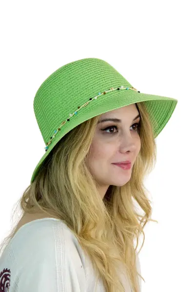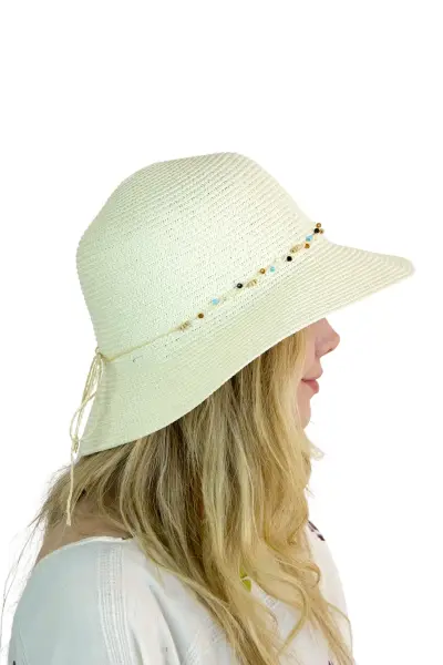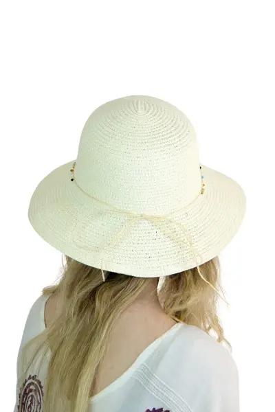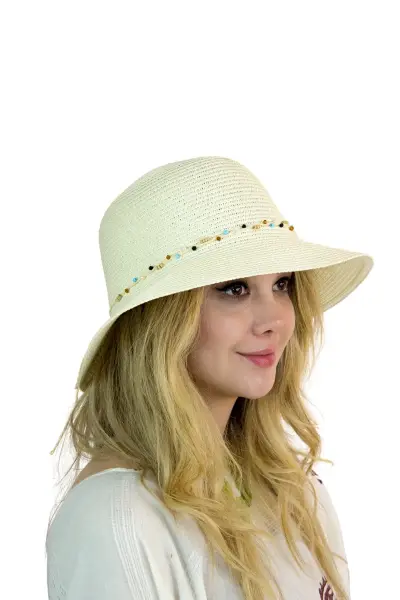Bay Şapkacı Kadın Doğal Taş Şeritli Şapka 3070 - Plajda doğal ve şık bir görünüm için ideal!