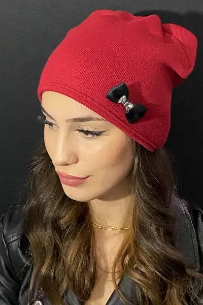 Kadın Fiyonklu Kırmızı Bere
