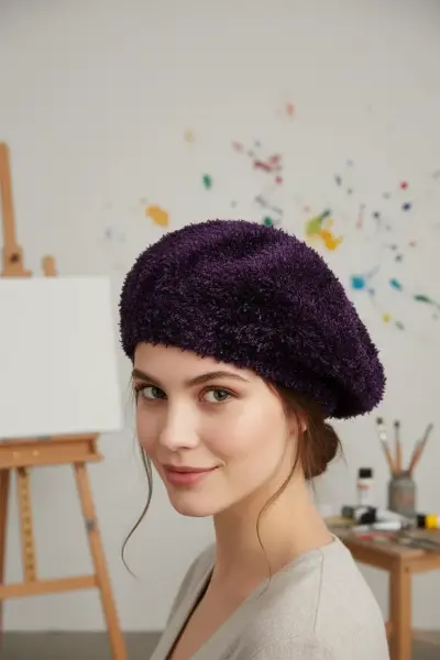 Kadın Mor Ressam Şapka