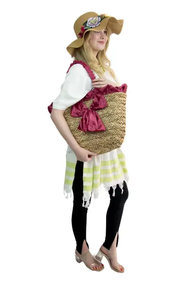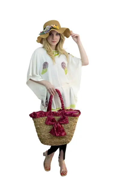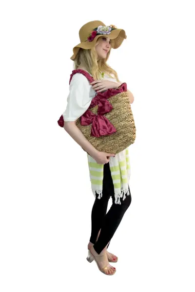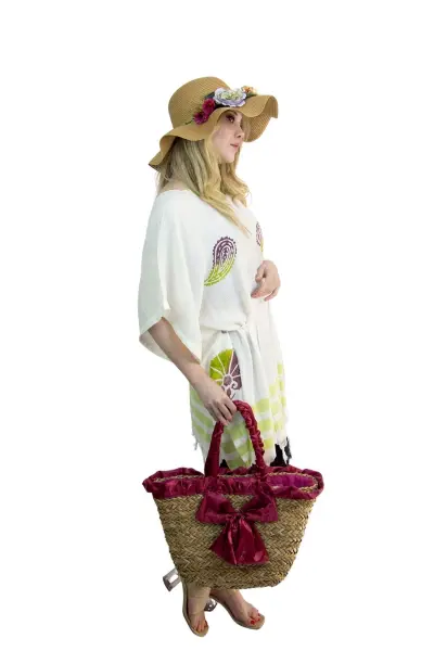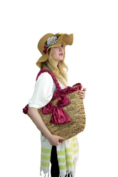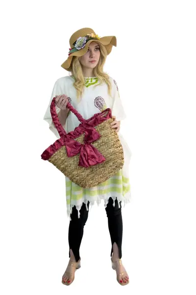 Kadın Plaj hasır Çantası  ve şapka kombin