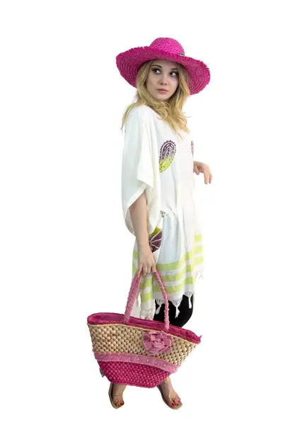 Yazın enerjisini ve plaj şıklığını bir araya getiren bu özel kombinle, stilinizi konuşturun! El yapımı hasır çantamız ve uyumlu şapkamız, hem fonksiyonel hem de modaya uygun bir seçenek sunuyor.