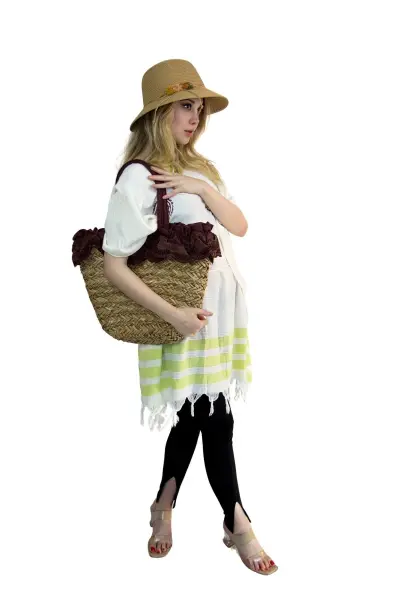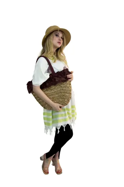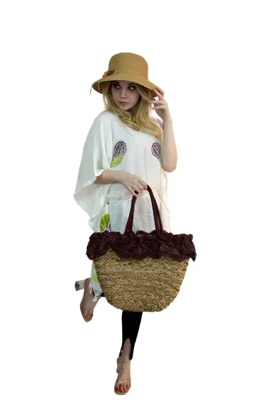 Kadın Plaj hasır Çantası  ve şapka kombin