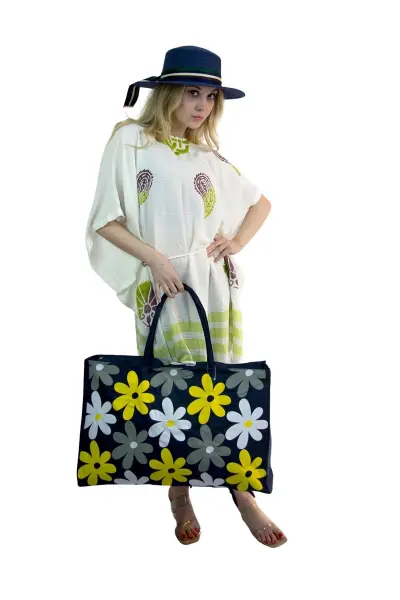 Kadın Plaj Çantası ve şapka takım 2175 - BAY ŞAPKACI