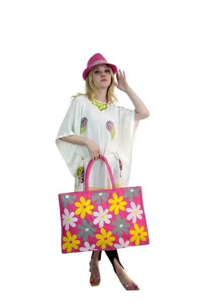 Kadın Plaj Çantası ve şapka kombin 2175