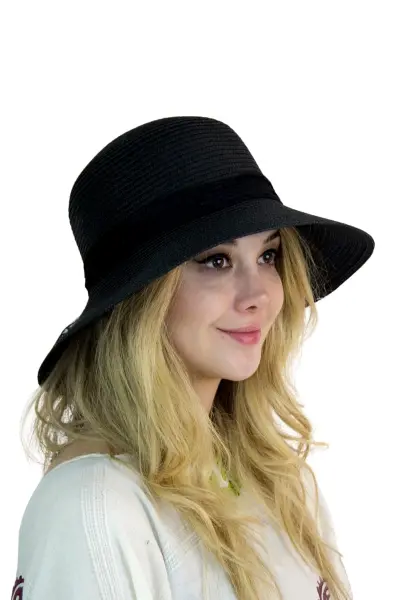 Yazlık Kadın Fileli Kemerli Hasır Fötr Şapka 6223