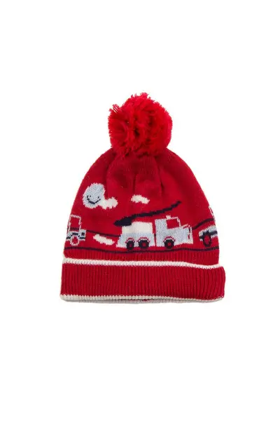 Kamyon Desenli Erkek Bebek Kırmızı Bere 1162