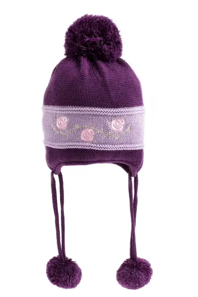 Kız Bebek Çiçek İşlemeli Eflatun Bere 1160