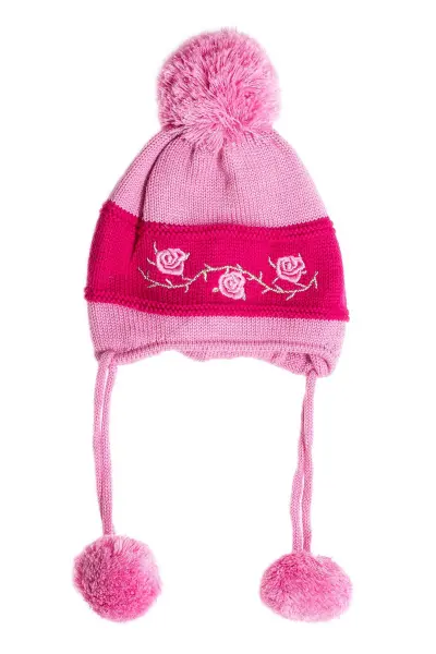 Kız Bebek Çiçek İşlemeli Pembe Bere 1160