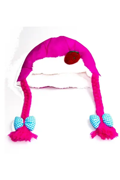 Kız Bebek Saç Örgülü Pembe Şapka 7115
