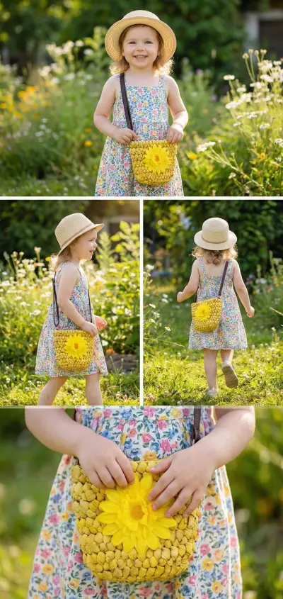 Canlı sarı rengi ve üzerindeki büyük, sevimli papatya detayıyla bu hasır çanta, miniklerin kalbini çalmaya hazır! Yazlık elbiselerle, şortlarla ve plaj kıyafetleriyle harika bir uyum yakalayan bu model, çocuğunuzun tarzına enerji katacak.
