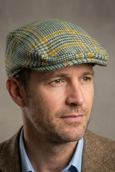 Klasik İngiliz Tarzı Yeşil Ekose Yün Kasket-9993