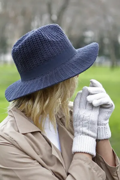 Örme Geniş Kenarlı Kadın Fötr 7171 Lacivert